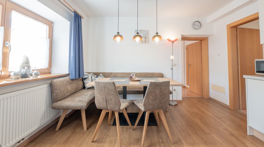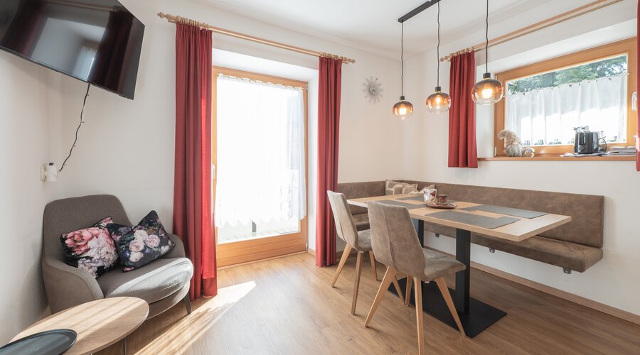 Our apartments, extended and fully modernised in summer 2008, are spacious and offer room for up to five guests. Within a few minutes’ walk, you will find shops, restaurants, the village park, and the stop for the free ski bus – the perfect starting point to explore the Kronplatz Dolomites Region with ease.