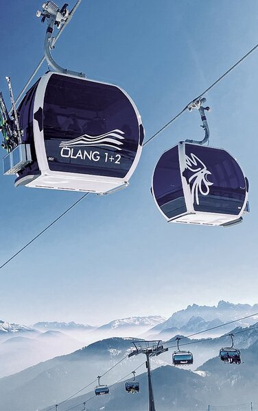 In Olang ist der schnellste Weg ins Skiparadies auch der kürzeste. Bloß elf Minuten dauert die Fahrt mit der innovativen 10-er Kabinenbahn Olang 1+2, die vom Dorf direkt hinauf auf den Kronplatz führt. Und dort warten perfekt präparierte Pisten, 360° Panoramen und einladende Hütten auf schneehungrige Skifahrer, Free-Ski- und Snowboard-Fans.