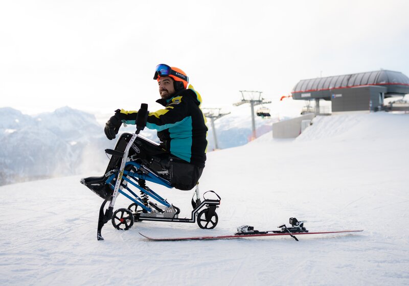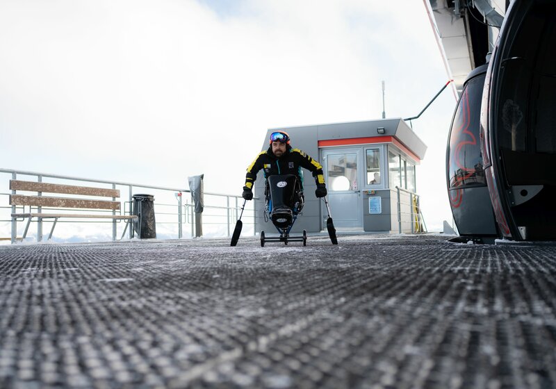 Dank des Monorollys können nun auch Monoskifahrerinnen bequem mit der Kabinenbahn auf den Berg gelangen. An jeder Talstation steht ein Monorolly bereit, mit dem sich Skifahrerinnen mit Beeinträchtigung mühelos in die Gondel rollen können. Monorollys sind dreirädrige Transferstücke mit Skibindungen, die es Behindertensportlern ermöglichen, sich auf Rollen fortzubewegen. Dafür wird das Bindungsteil des Monoskis von den Kufen gelöst und in das Transferstück eingespannt. So können die Sportler die Gondel nutzen, ohne die Sitzschale verlassen zu müssen.