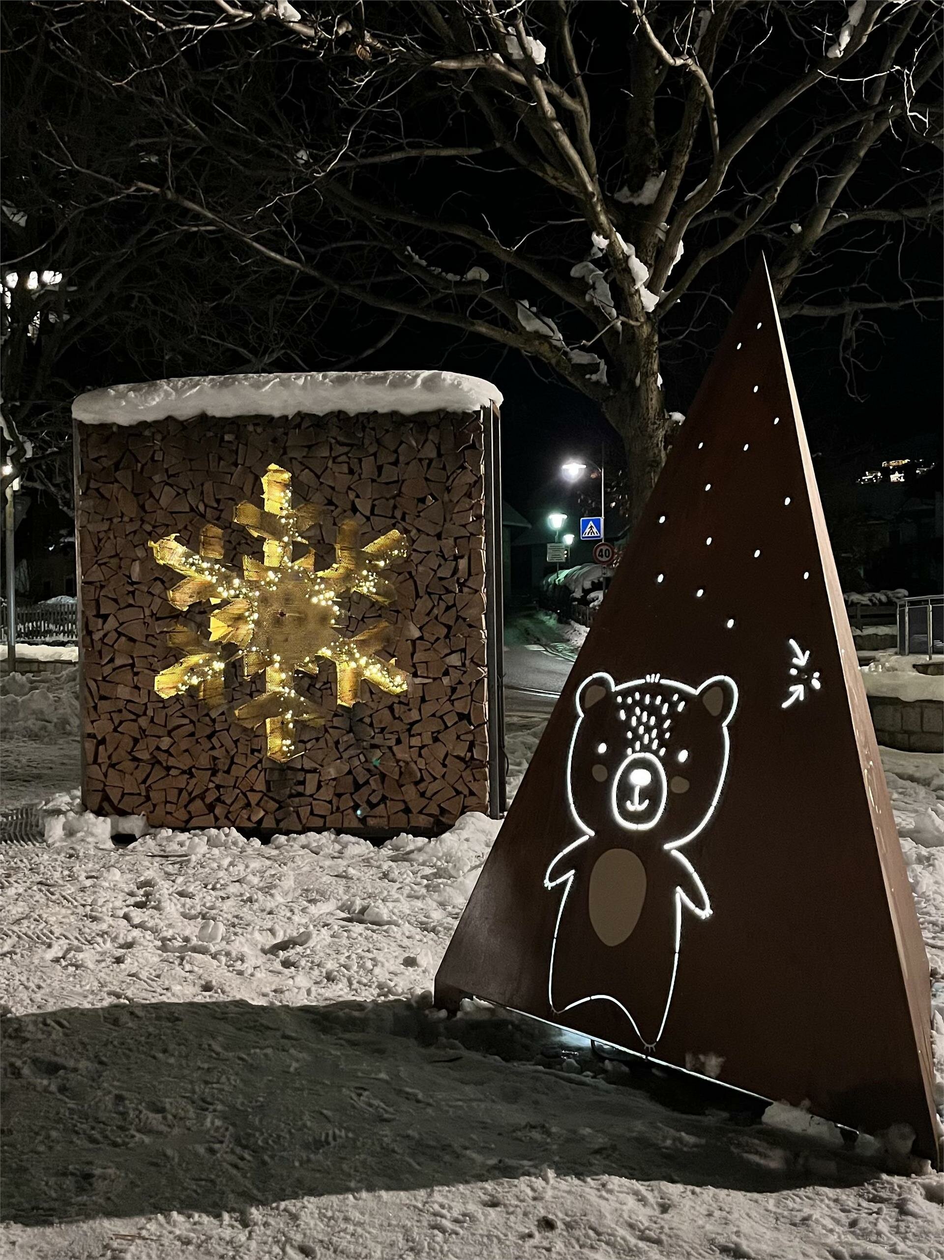 Die Landschaft liegt eingebettet in einem märchenhaften Weiß: tiefer Schnee lässt die schroffen Gipfel und Felsen der Dolomiten sanft und weich erscheinen, Wälder und Wiesen an deren Hängen und im Tal liegen unter einer tiefen Schneedecke. Nach Einbruch der Dämmerung legt sich Stille über die Landschaft und die Sterne funkeln am Horizont. Weihnachtliche Lichter erhellen die Straßen, in den Holzobjekten der Ausstellung „holzART“ erscheinen funkelnde Sterne, leuchtende Engel und glühende Herzen in sanftem Schein und auch der Park von Mitterolang erstrahlt in einem ganz besonders stimmungsvollen Licht: Willkommen im Lichterzoo.