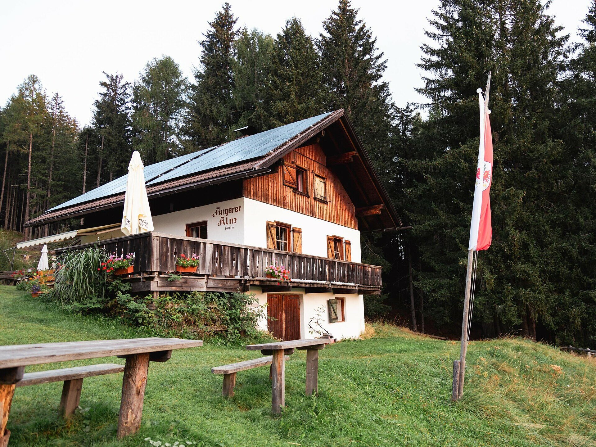 The loop starts at the Riedlerhöfe in Oberolang and follows the paved road towards the Kids World. From there, continue along the road with a gentle incline to the junction for the Angerer Alm. From this point, the final kilometre to the hut follows a gravel road, where the last approximately 100 metres of elevation gain are covered. Along the route, several benches invite you to rest and relax. Refreshments are available at the Riedlerhöfe and the Angerer Alm. A drinking water refill point is located at the Kids World.