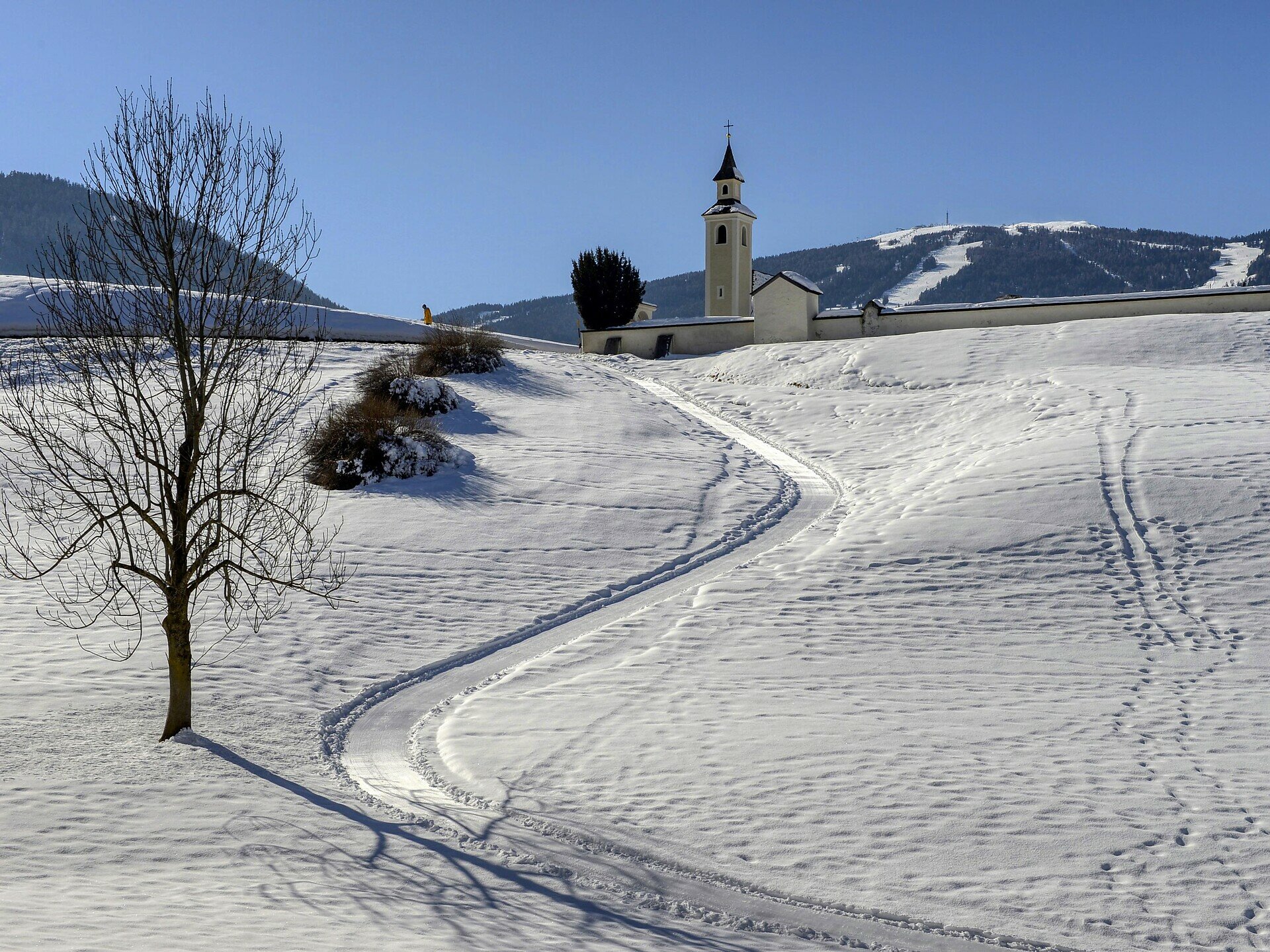 The trail leads you through a picturesque forest and then along the Olang reservoir, until you reach the charming neighbouring village of Welsberg. The outward route is about 5.6 km long. For the return, you can take the regional train (No. 400) or simply walk back the same way.