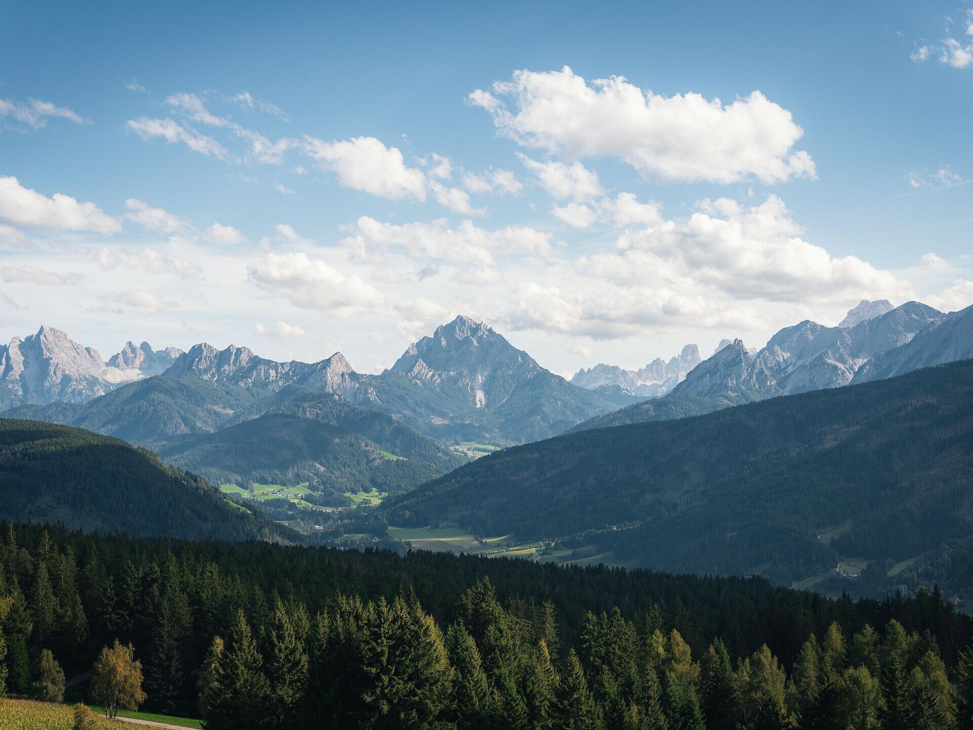 Dopo il ritorno al Kirmlehof si segue il giro panoramico delle Dolomiti in direzione loc.Obergoste. Lungo questo tratto si aprono continuamente splendidi scorci panoramici sulle Dolomiti.