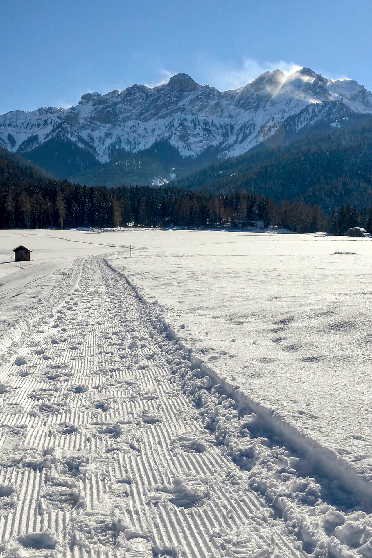 Il percorso invernale, lungo circa 4 km, ti porta dapprima accanto al Mondo Bimbi di Valdaora, per poi proseguire tra prati, campi e boschi innevati in direzione Monguelfo. Lungo il tragitto passi anche dal punto panoramico “Otto Chiese”, da cui puoi godere una splendida vista sulla valle.