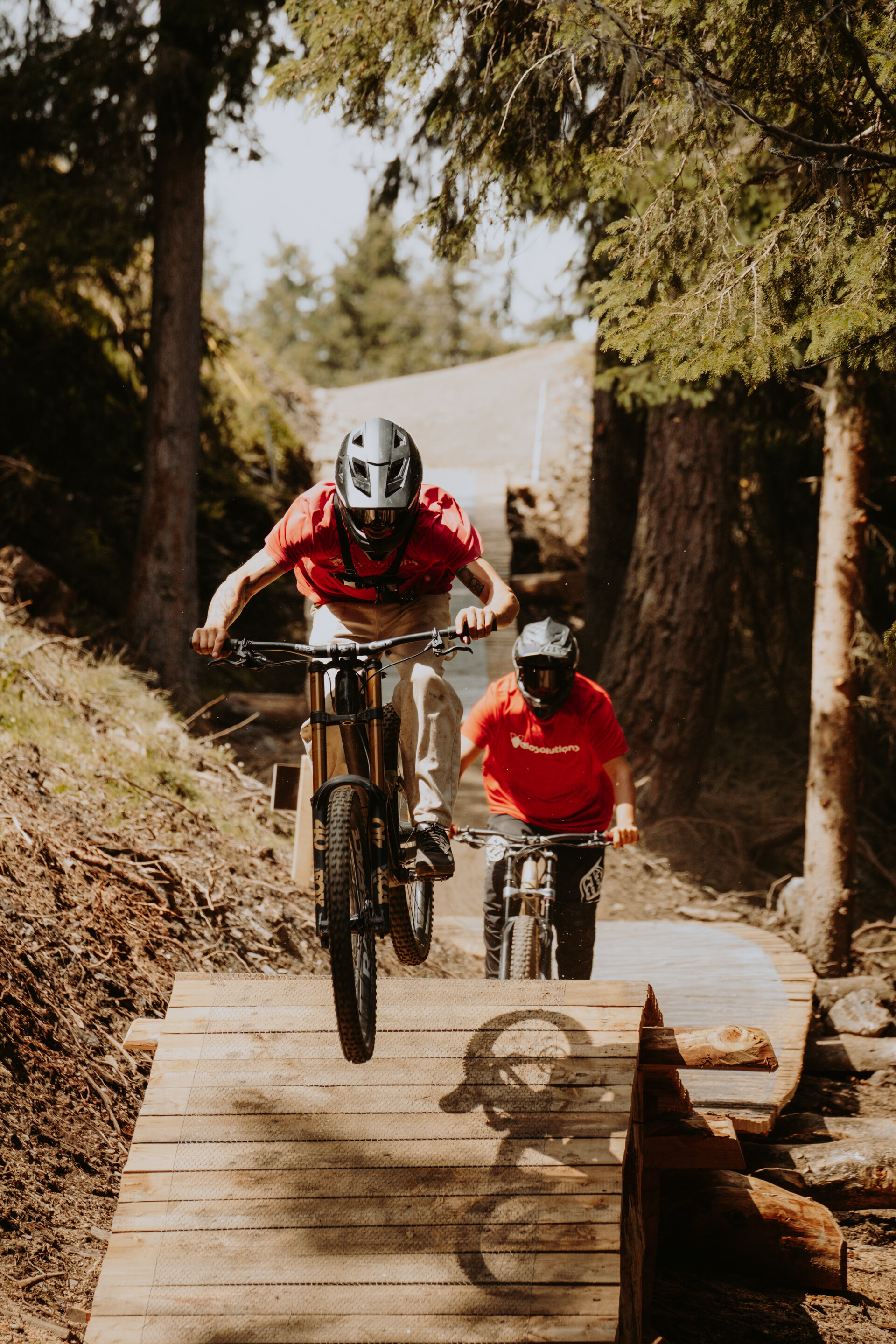 Lo Spitzhorn Trail è diviso in tre sezioni: la prima parte, che si stacca dal Gassl Trail, è una sequenza di curve flow molto scorrevoli, la sezione centrale presenta salti e features in un'area aperta e con grande visibilità fino al panoramico Wallride. L'ultimo tratto attraversa il bosco, alternando terreno naturale e varie passerelle in legno che alla fine riconducono al trail già esistente.