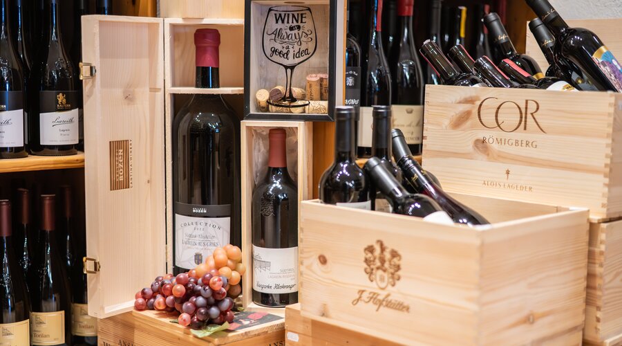 Unsere Weinauswahl vereint Tradition, Handwerk und das besondere Terroir der Region: fruchtige Weißweine wie Gewürztraminer oder Pinot Grigio und charaktervolle Rotweine wie Lagrein oder Vernatsch – jede Flasche ein Stück Südtirol.